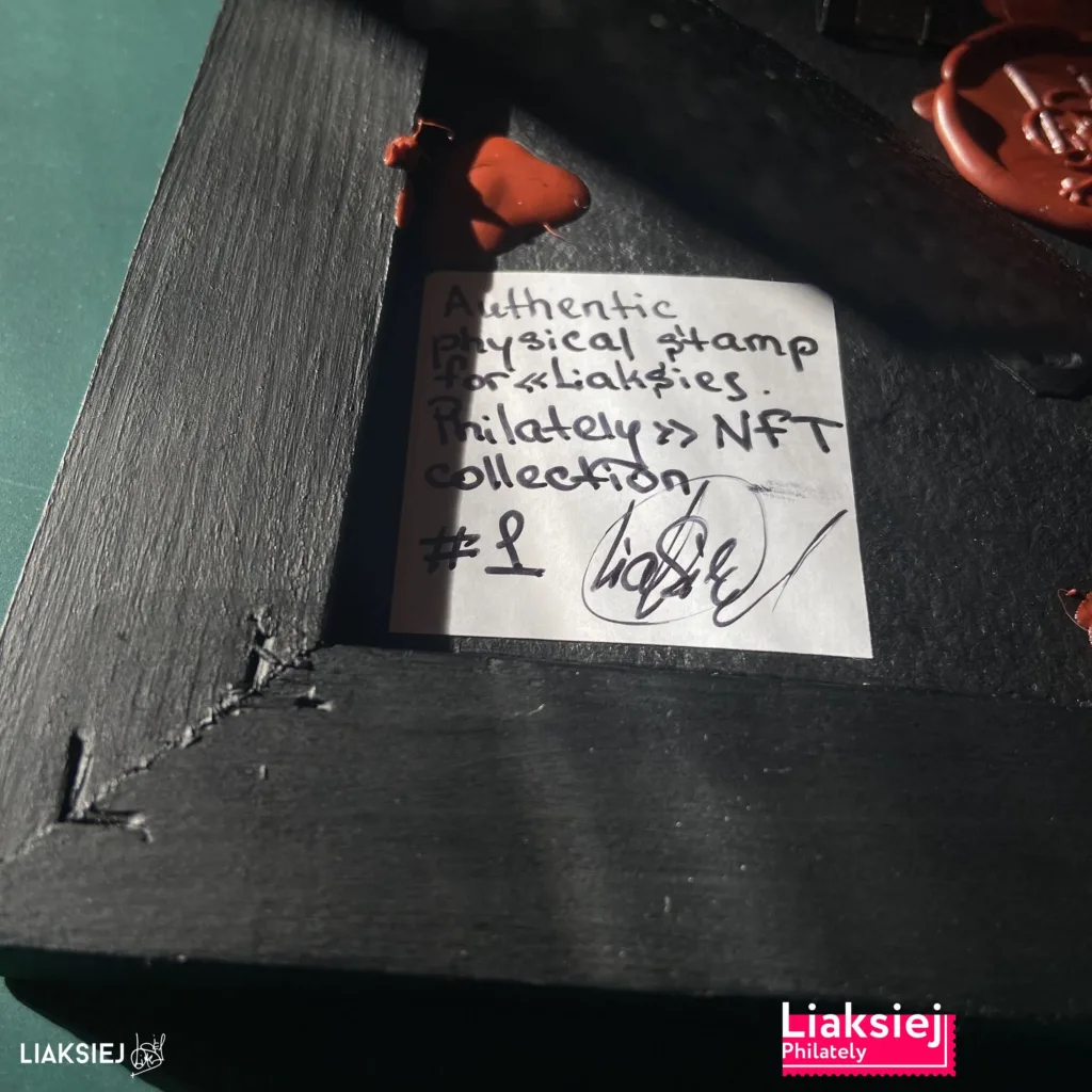 *This physical stamp is an authentic prototype from the Liaksiej.Philately collection, number #1, and corresponds to its NFT version.