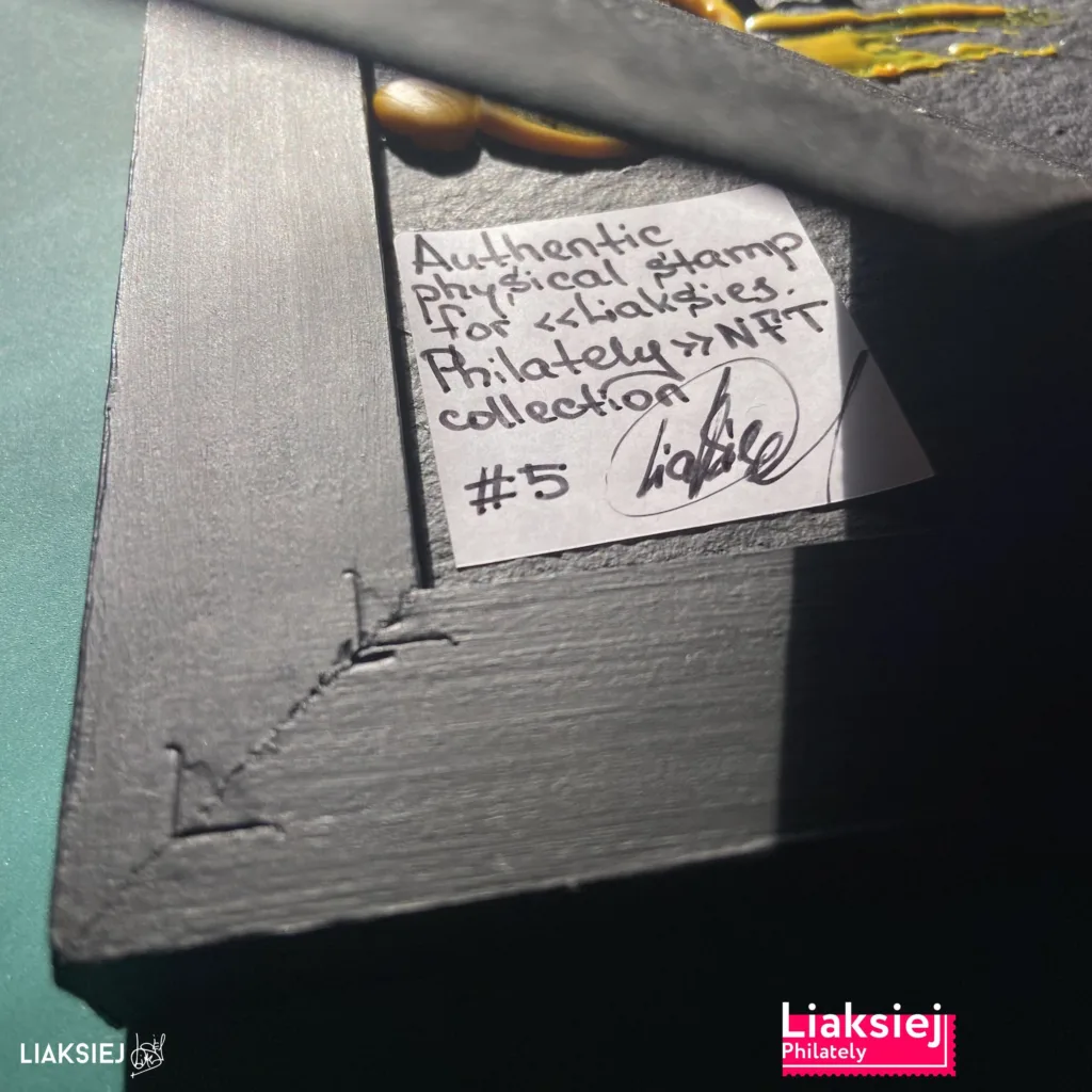 *This physical stamp is an authentic prototype from the Liaksiej.Philately collection, number #5, and corresponds to its NFT version.