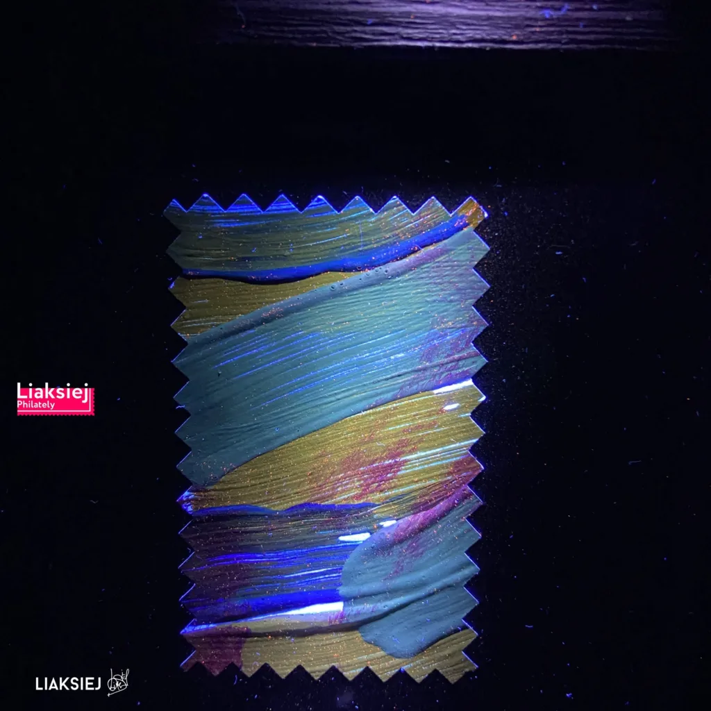 – Fluorescent factor [The abstract stamp has fluorescent colors]