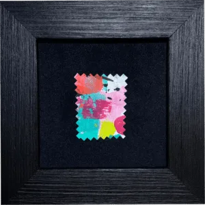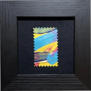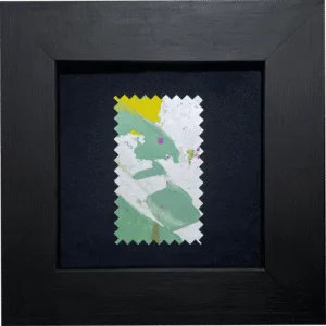 This collection includes 14 abstract stamp NFTs, alongside 10 authentic physical versions framed in wood, which can be purchased directly through my website, liaksiej.com.
